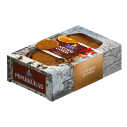 Smilšu cepumi ar vanīļas garšu. Sastāvdaļas: kviešu milti, margarīns(augu eļļa un rafinēti tauki((palmu eļļa un tās frakcijas)) emulgators( E433, E471..