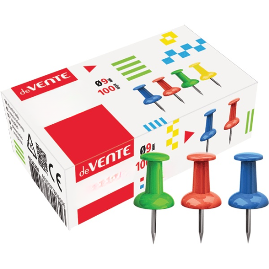 Организуйте свое рабочее или домашнее пространство с легкостью, используя цветные канцелярские кнопки-гвоздики deVENTE диаметром 9 мм. Идеально подходящие для офиса, школы и дома, эти незаменимые принадлежности предназначены для надежного крепления важных заметок, фотографий и документов к доскам объявлений, пробковым доскам и другим поверхностям для демонстрации. Их надежное крепление гарантирует, что ваши закрепленные предметы останутся на месте, помогая вам поддерживать аккуратную и упорядоченную среду.